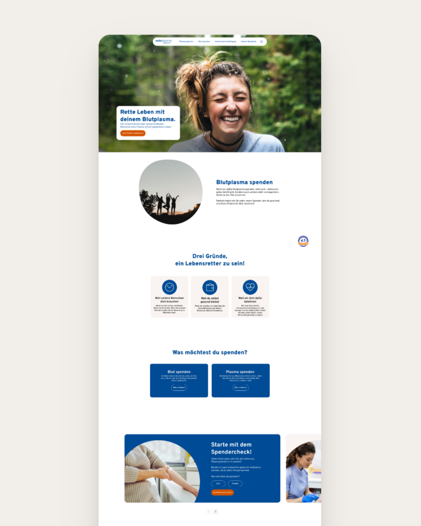 Octapharma Plasma ist ein Anbieter von Plasmaspendezentren. Mit Figma entwickelten wir ein barrierefreies UX/UI Design, das allen Nutzergruppen einfachen Zugang zu Informationen und Funktionen bietet, Vertrauen in den Service stärkt und die Nutzerfreundlichkeit auf allen Endgeräten verbessert.